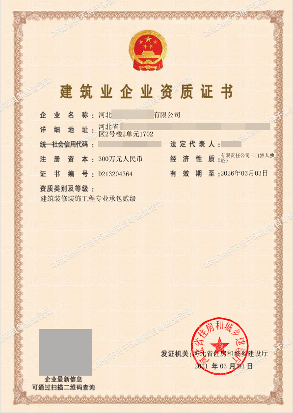 建筑裝修裝飾工程專業(yè)承包二級(jí)資質(zhì)