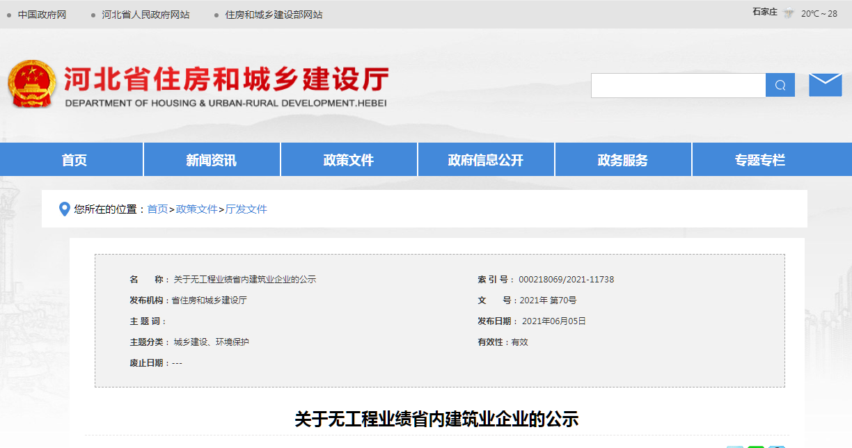 關(guān)于無(wú)工程業(yè)績(jī)省內(nèi)建筑業(yè)企業(yè)的公示