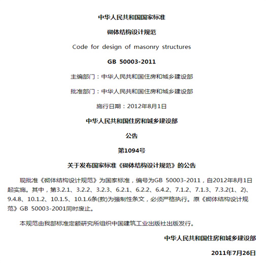 本規(guī)范共分10章和4個(gè)附錄,主要技術(shù)內(nèi)容包括:總則,術(shù)語(yǔ)和符號(hào),材料,基本設(shè)計(jì)規(guī)定,無(wú)筋砌體構(gòu)件,構(gòu)造要求,圈梁、過(guò)梁、墻梁及挑梁,配筋磚砌體構(gòu)件,配筋砌塊砌體構(gòu)件,砌體結(jié)構(gòu)構(gòu)件抗震設(shè)計(jì)等。
