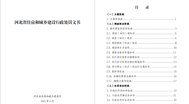 為適應行政處罰信息化建設,提升行政執(zhí)法效能,結合河北省住房城鄉(xiāng)建設綜合執(zhí)法信息管理平臺網上辦案系統(tǒng)操作需求,文書總體編排按照執(zhí)法辦案時間順序,以行政處罰案件的辦案流程為主線,在各個階段穿插相應的執(zhí)法文書,實現(xiàn)執(zhí)法全過程留痕和可回溯管理,充分保障了行政執(zhí)法公示制度、執(zhí)法全過程記錄制度、重大執(zhí)法決定法制審核制度的貫徹落實。(趙子闊 陳鵬)