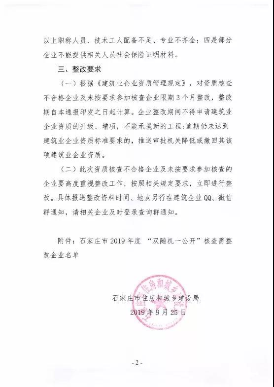 對(duì)資質(zhì)核查不合格企業(yè)限期3個(gè)月整改;