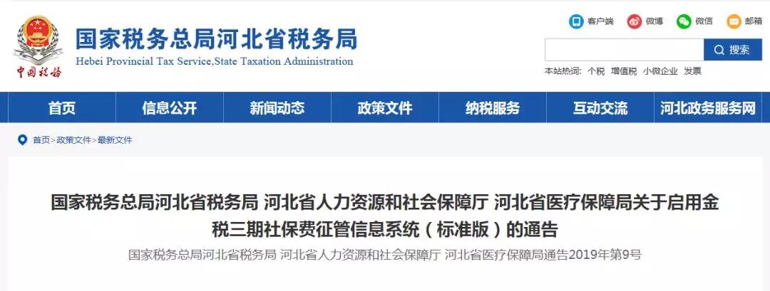 最新消息,河北省社會保險費(fèi)將于11月1日起,正式由金稅三期系統(tǒng)征收!“社保稅征”正式拉開序幕!