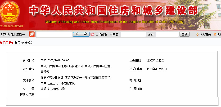 住房和城鄉(xiāng)建設部 應急管理部關于加強建筑施工安全事故責任企業(yè)人員處罰的意見